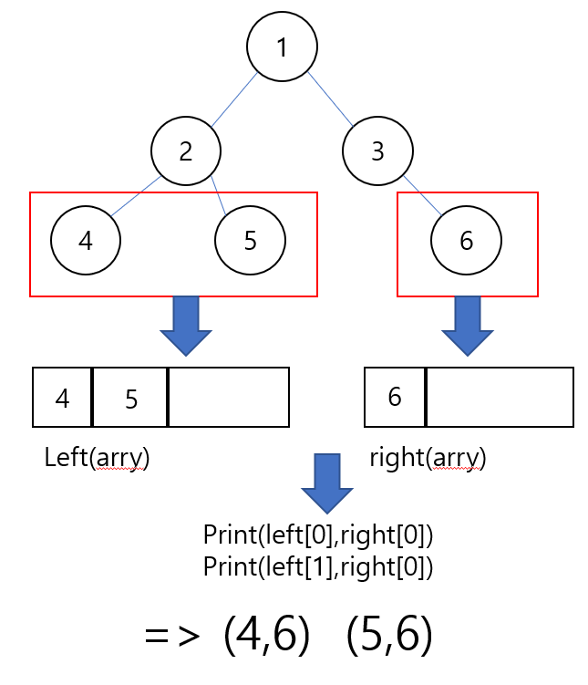 핵심 : root를 기준으로 left, right subtree의 leafs들을 찾으면 된다.