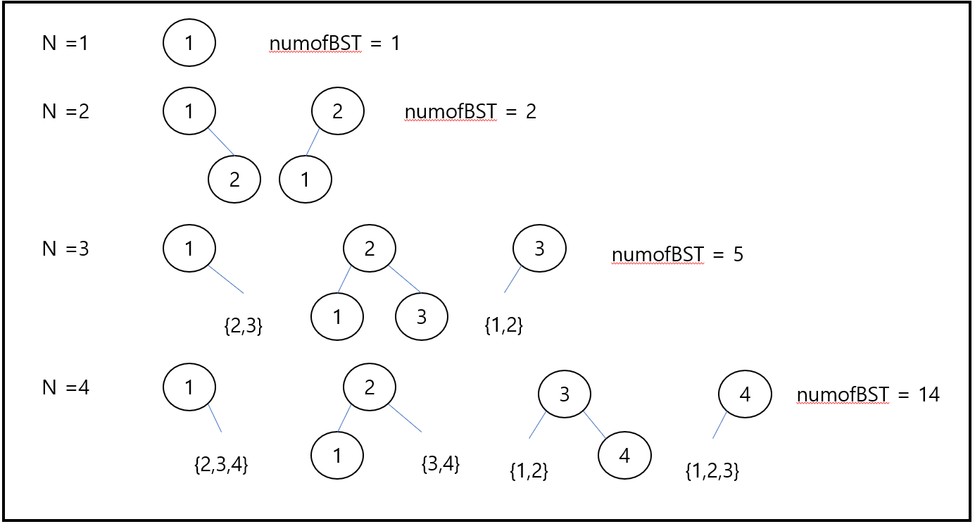 주어진 노드의 갯수로 몇개의 Binary Search Tree를 만들 수 있는지 묻는 문제이다.