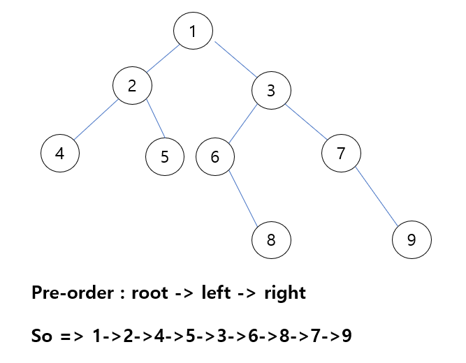 - 트리를 root부터 pre-order traversal을 통해 node 하나하나씩 탐색한다.