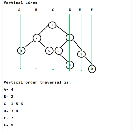 이진트리를 아래와 같이 수직 순서로 출력하는 알고리즘을 짜는 문제이다.