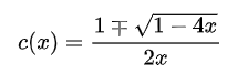 이제 여기서 일반화된 이항정리(Newton's generalized binomail theorem)를 이용한다. 이를 이용하여 c(x)값을 다시 다른 급수형식으로 표현할 수 있다.(한정된 합을 한정되지 않은 수열로 표현할 수 있다)