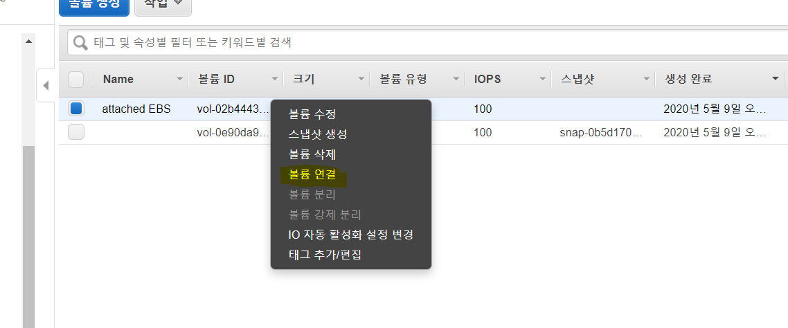 볼륨을 생성하고 이를 인스턴스에 연결