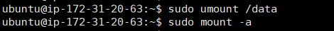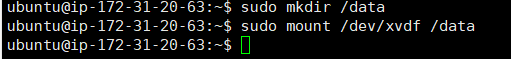 추가된 EBS를 탑재할 디렉토리인 data를 생성하고 추가된 EBS 디바이스 xvdf를 data디렉토리에 마운트시킨다.