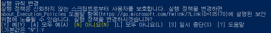 이를 해결하기 위해서는, Windows PowerShell을 관리자 권한으로 실행하고 아래의 명령어를 이용해 제한을 풀어주면 된다.