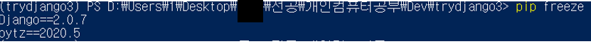 웹개발을 위해 설치한 Django와 pytz밖에 없다.