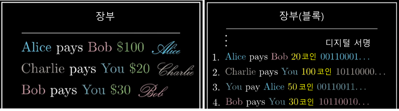 다른 말로는 트랜잭션을 기록하는 분산된 데이터원장이라고도 합니다.