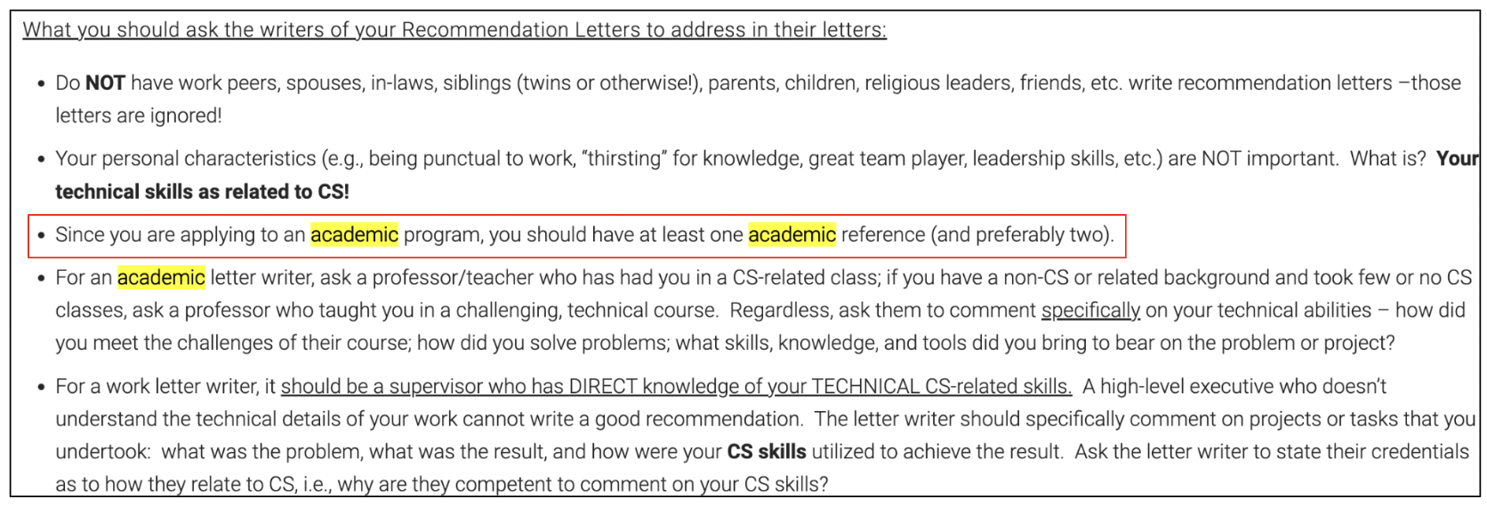 OMSCS 지원서 가이드라인을 살펴보면, 아카데믹 추천서를 2개 받기를 권장하는 것을 볼 수 있습니다.