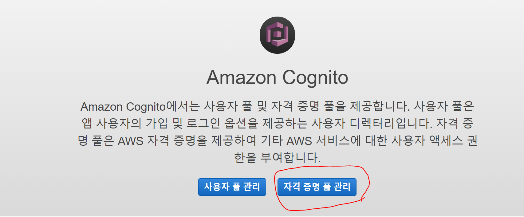이제 Cognito 자격증명을 생성해줍니다.